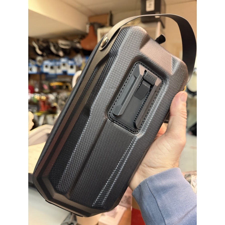 Эта сумка создавалась такой же защищенной, как лесной орех! Прочная "скорлупа" корпуса с отделкой "под карбон" сохранит содержимое от повреждения. Кроме этого, модель оснащена светоотражающими элементами и системой быстрой установки. Размеры: 29х15х16 см.
