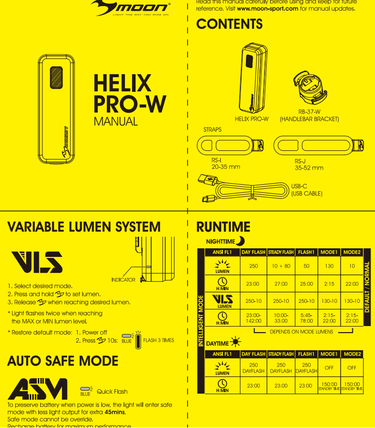 | комплектация | Фонарь Moon Helix Pro 250 Люмен, Крепление RB-37-W, Две резинки разного диаметра, зарядный провод USB - USB-C, Инструкция, Упаковка |