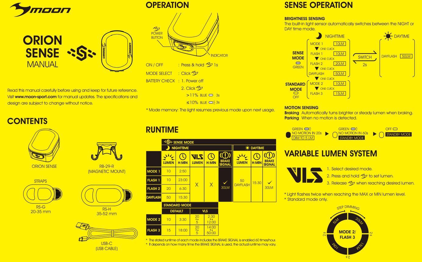 | комплектация | передний Moon Orion-W, Магнитное крепление RB-29-R, O-rings для крепления: RS-G (для 20-35mm диаметра); RS-H (для 35-52mm диаметра), USB-Micro USB кабель гарантийный талон, упаковка |