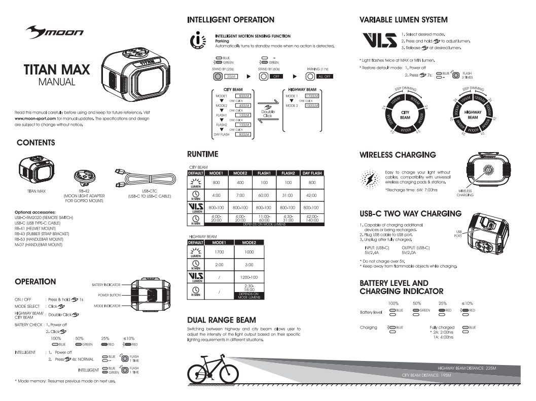 | комплектация | Фонарь передний Moon Titan Max 1700, Крепление M-07 (Handlebar Mount), Крепление RB-42 (MOON Light adpater for GOPRO mount), W-RMS (Wireless remote switch), USB-C-USB-C кабель, Три шестигранника, Инструкция, Упаковка |