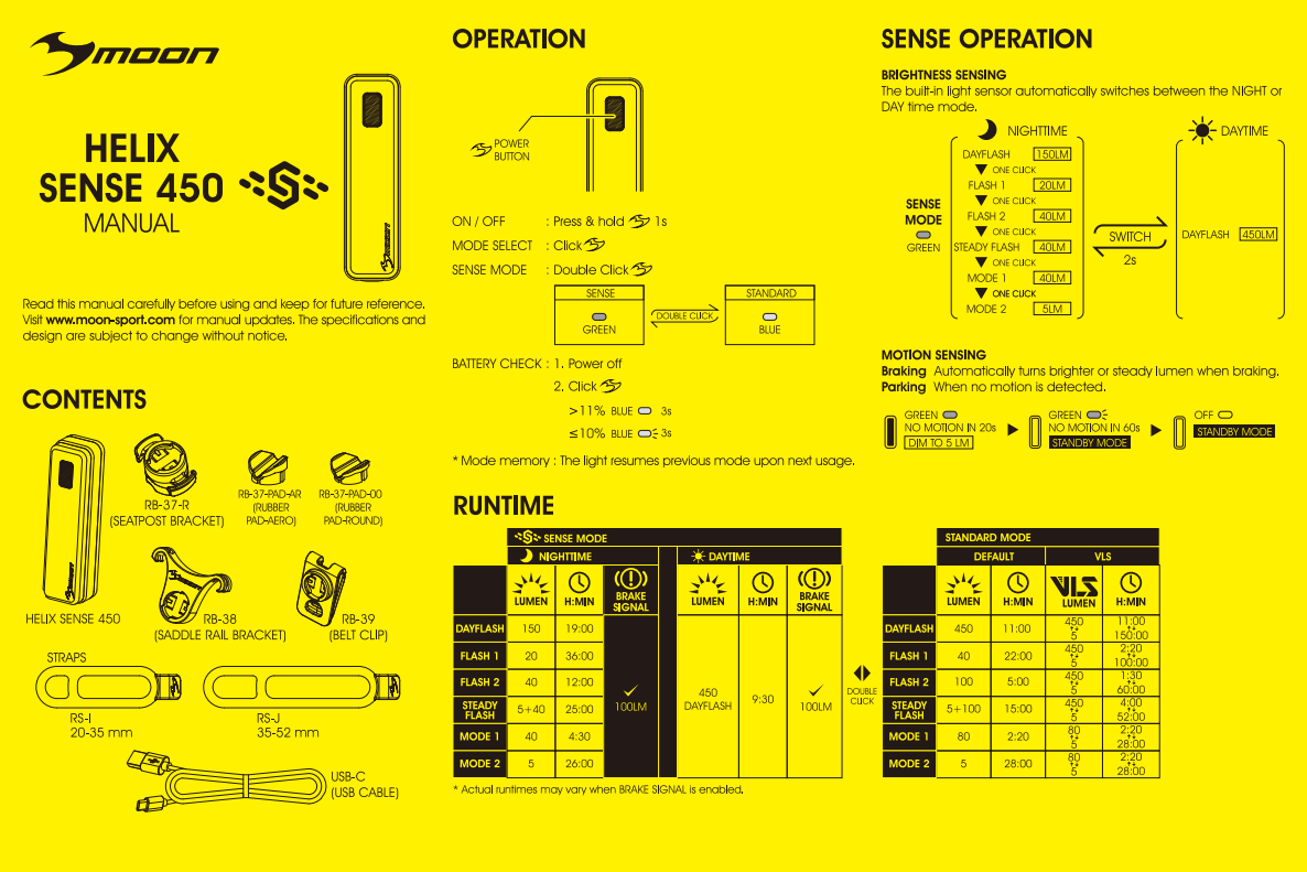 | комплектация | Фонарь задний Moon Helix Sense 450, Крепление RB-37-R, Крепление RB-37-PAD-00, Крепление RB-37-PAD-AR, Резинки RS-I, Резинки RS-J, Крепление RB-27 (для GoPro), Зарядный кабель USB Type-C, Инструкция, Упаковка |
