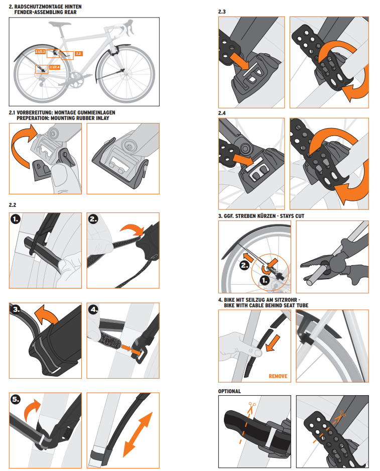 Спереди защита усилена новым передним двухступенчатым брызговиком, который отражает воду и грязь на колесо и вниз, подальше от вашего лица. В заднем крыле используется инновационный телескопический удлинитель для большего охвата в области подседельной трубы, и вся конструкция прочно удерживается на своем месте с помощью совершенно новой резиновой системы крепления, подходящей для множества конструкций рам, включая рамы, имеющие встроенные желобки для тросов тормозов или передач.