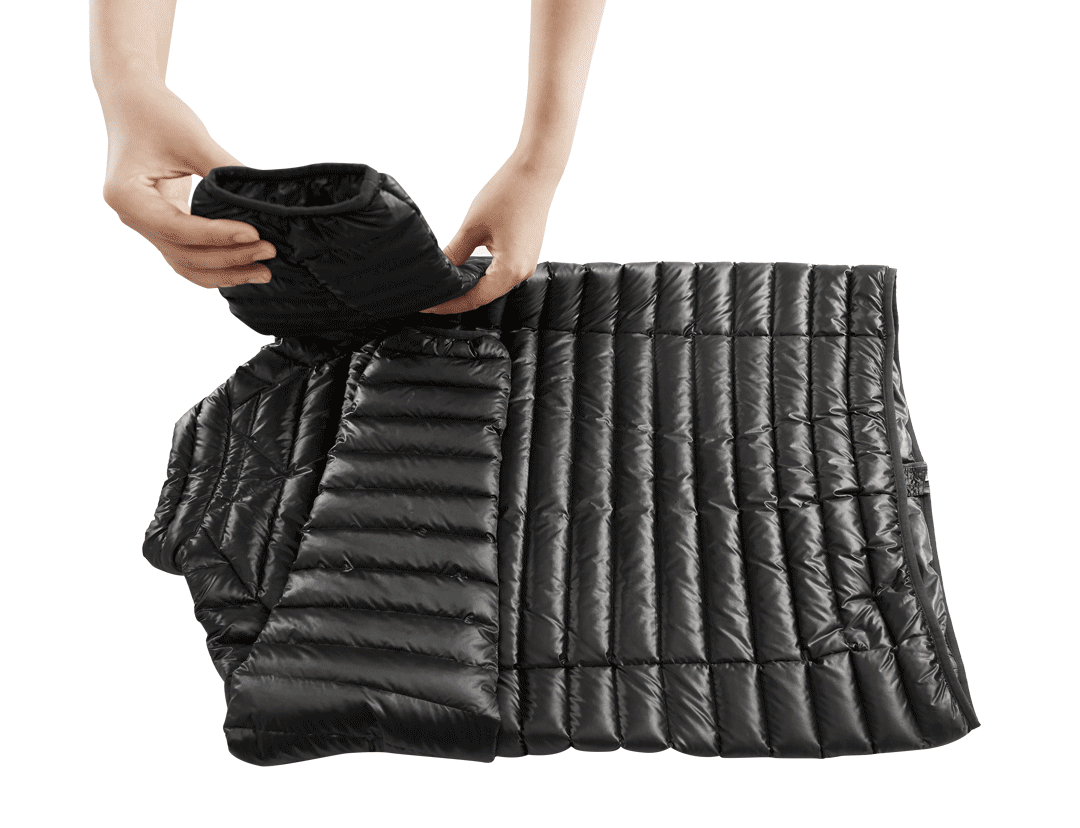 Очень лёгкая куртка с водоотталкивающим слоем. Для компактного хранения и транспортировки собирается в мешочек. Молния YKK