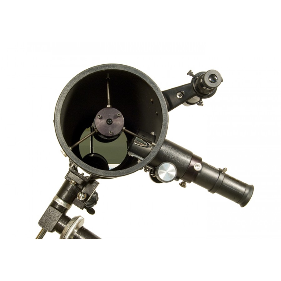 Телескоп построен по зеркальной схеме Ньютона с главным зеркалом диаметром 114 мм. Зеркальный объектив обеспечивает высокое качество изображения и правильную цветопередачу – изображение не испорчено хроматизмом, который свойственен линзовым телескопам. На главное и вторичное зеркала телескопа нанесено защитное покрытие, предотвращающее потемнение отражающего слоя и снижение яркости изображения.
