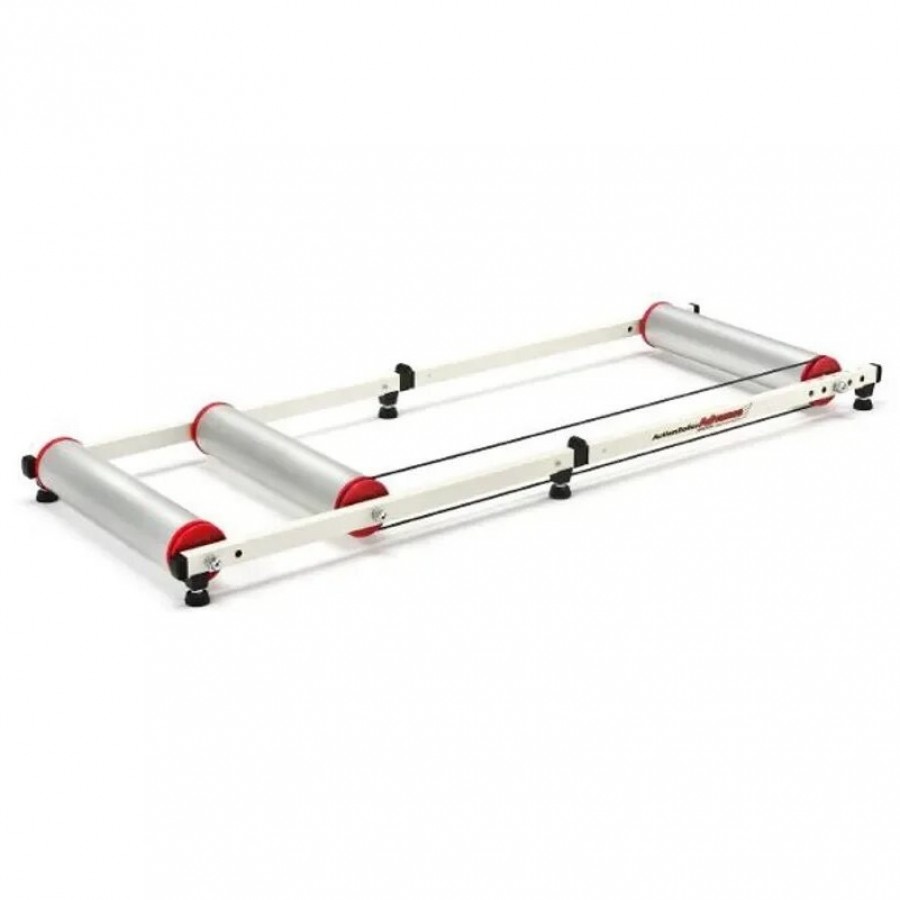Современная дорожка. Никакой жесткой фиксации - максимальная работа всех видов мышц, участвующих в поддержании баланса. Для повышения долговечности, ролики данной модели сделаны из алюминия. При использовании велостанка рекомендуется установка специальных покрышек для тренировок (пониженное сопротивление качению, стойкость к высоким температурам).