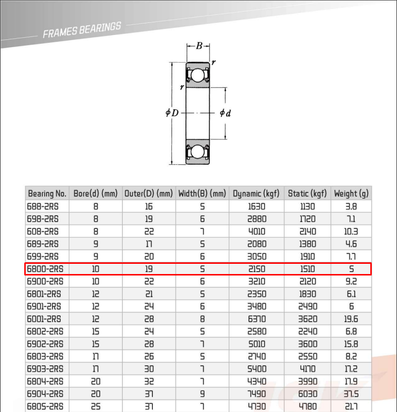 Подшипник Jota 6800 2RS Max — радиальный шариковый подшипник закрытого типа, рассчитанный на повышенные нагрузки. Типоразмер 6800 с внутренним диаметром 10 мм, внешним диаметром 19 мм и шириной 5 мм широко используется в велосипедных втулках, каретках и элементах подвески, где требуется компактное решение с высокой надёжностью.